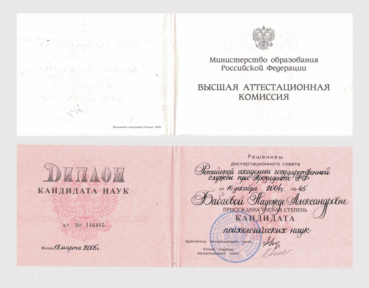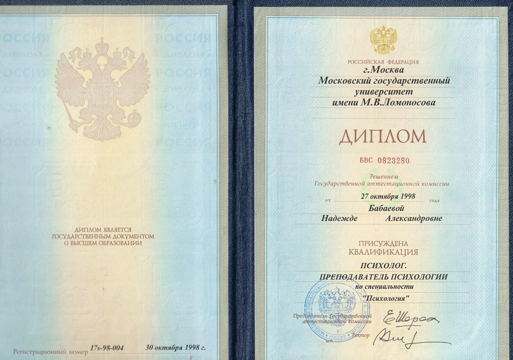 Давайте знакомиться. Я Надежда Бабаева, кандидат психологических наук, член профессиональной психотерапевтической Лиги, член-корреспондент Международной Академии Акмеологических Наук, психофизиолог, реабилитолог, психотерапевт, автор книг и научных статей, автор методов лечения и саморегуляции, а также практикующий специалист.